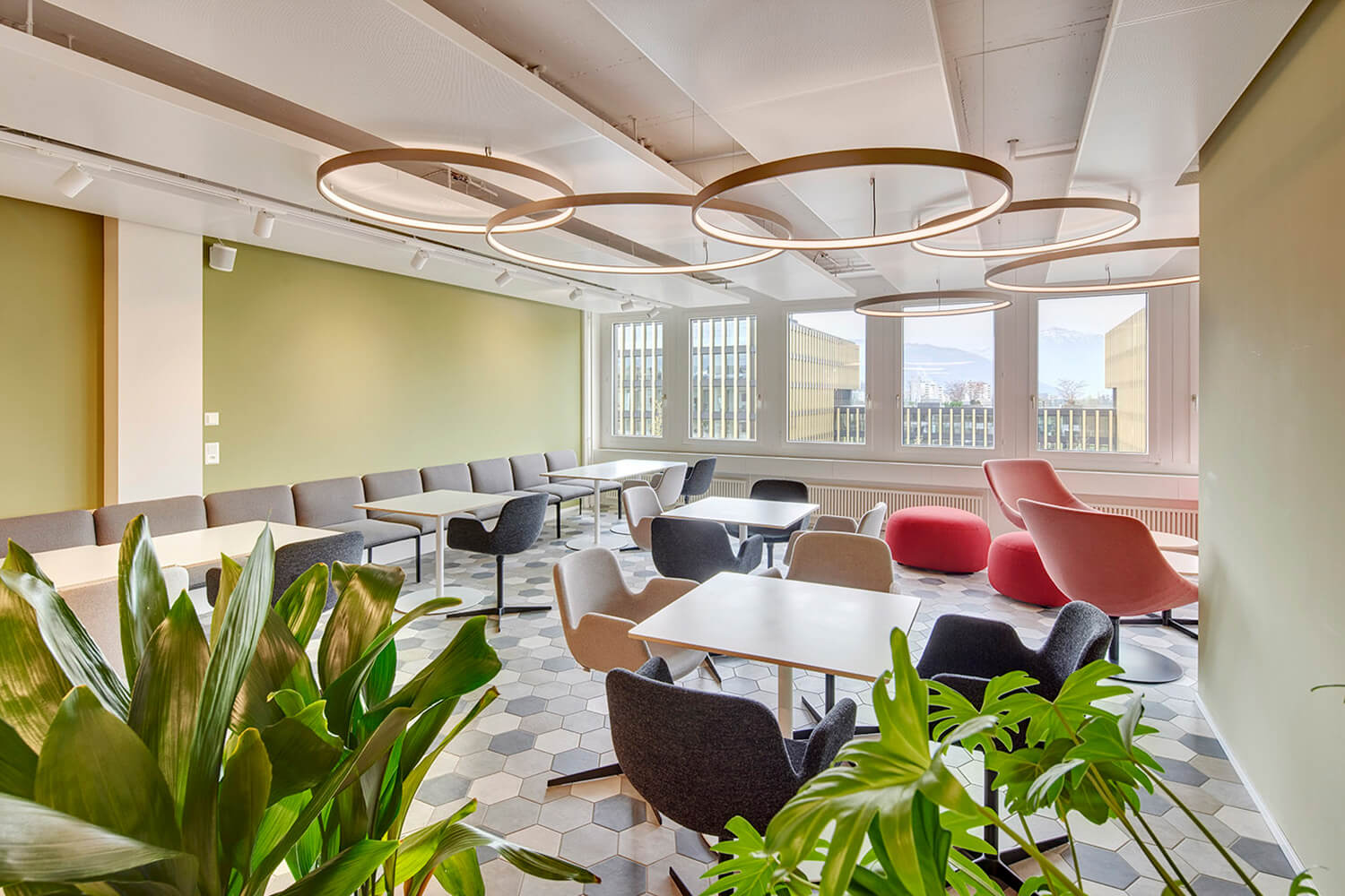 Neben klassischen Büroräumen bieten unsere Standorte auch Meetingräume und Co-Working-Bereiche (Steinhausen), ideal für Präsentationen, Besprechungen und gemeinschaftliches Arbeiten: